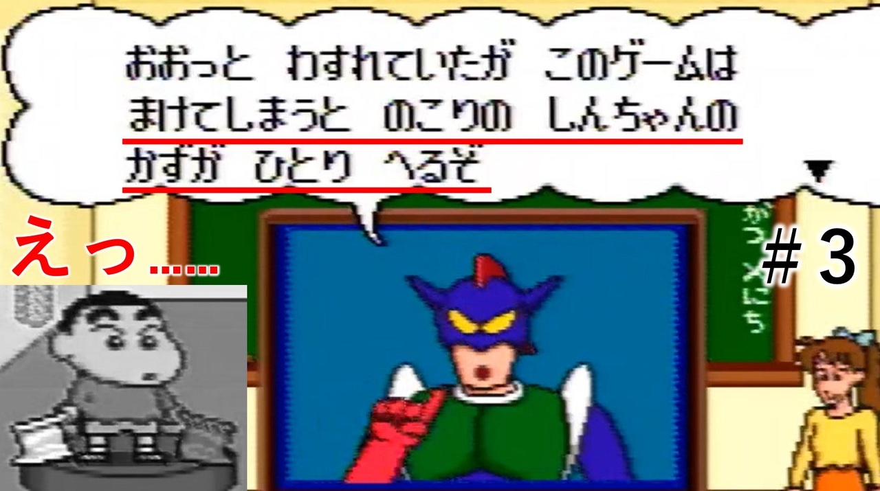 よくきけよ このゲームは しっぱいすると のこりの しんのすけの かずが ひとり へるんだ